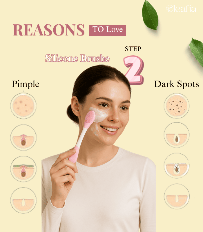 🎁 FREE GIFT – Oleafia Silicone Double Head Facial Cleansing & Face Wash Brush – A hygienic, dual-ended beauty tool with a soft silicone brush for deep cleansing and a spatula end for mess-free mask or product application.